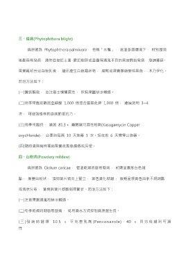 (三 )發 病 時 選 擇 10.5 ﹪ 平 克 座 乳 劑 (Penconazole)、 40 ﹪ 貝 芬 依 滅 列 可 濕