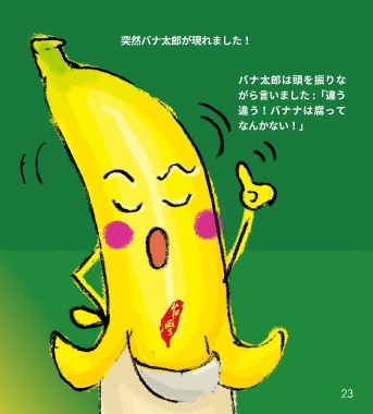 突然バナ太郎が現れました! バナ太郎は頭を振りな がら言いました :「違う 違う!バナナは腐って なんかない!」 23