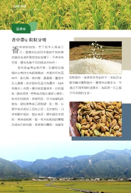 及花蓮縣。依米質特性區分為稉米、秈米 飯等鹹式餐點製作。臺灣米品種多元,可