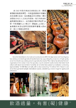 approximately 137,000 liters annually with a value exceeding 113 million NTD. Taiwan's rural