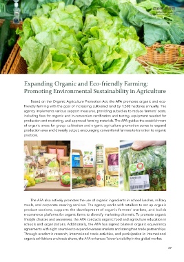 Based on the Organic Agriculture Promotion Act, the AFA promotes organic and eco-