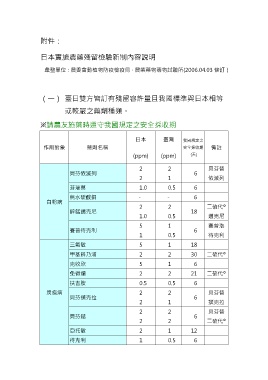 (一) 臺日雙方皆訂有殘留容許量且我國標準與日本相等