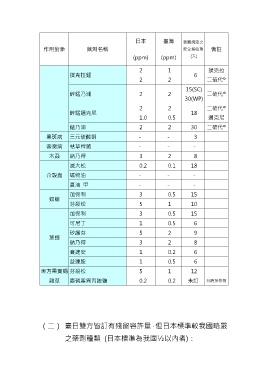 (二) 臺日雙方皆訂有殘留容許量,但日本標準較我國略嚴