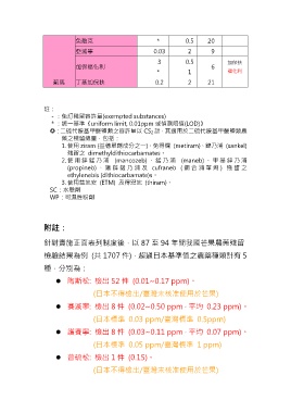 陶斯松: 檢出 52 件 (0.01~0.17 ppm)。