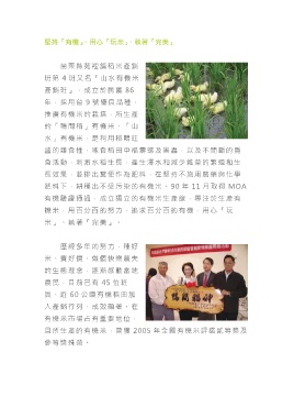 且所生產的有機米,曾獲 2005 年全國有機米評鑑貳等獎及