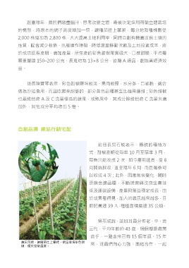 農民架網,讓種苗往上攀爬。網室栽培彩色甜 來,班員們向心力強、團結合作,一起