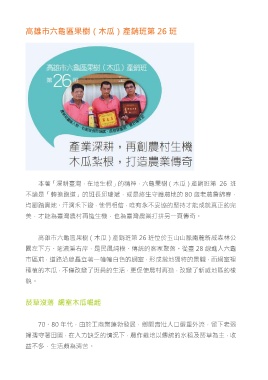 本著「深耕臺灣,在地生根」的精神,六龜果樹(木瓜)產銷班第 26 班