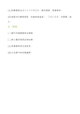(三)無償提供土地八 ○ ○ 平方公尺,舖設道路,造福鄉梓。 (四)發動村民義務勞動,拓寬產業道路二、三四 ○公尺,並捐獻二萬 元 。 三、其他: (一)擔任四健會義務指導員。 (二)核心農民師資訓練結業。 (三)長春農事研究班班長。 (四)大吉國中家長會顧問。