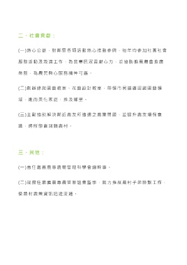 二、社會貢獻: (一)熱心公益,對鄰里各項活動熱心推動參與,每年均參加社團社會 服務活動及救濟工作,為貧寒民眾貢獻心力,並協助推展農會推廣 業務,為農民熱心服務精神可嘉。 (二)創辦綠苑園藝教室、花藝設計教室,帶領市民擴廣認識園藝領 域,進而美化家庭,推及鄰里。 (三)主動協助解決鄰近農友所遭遇之農業問題,並提升農友環保意 識,將所學皆回饋農村。 三、其他: (一)曾任嘉義農專農場管理科學會總幹事。 (二)現擔任嘉義農專農管聯誼會監事,戮力推展農村子弟聯繫工作, 使農村農業資訊迅速流通。