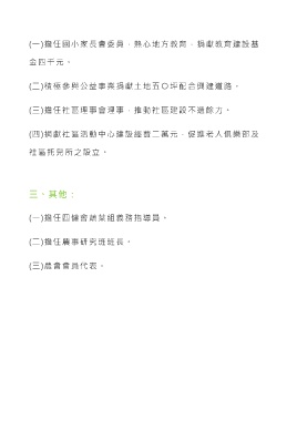 (三)擔 任 社 區 理 事 會 理 事 , 推 動 社 區 建 設 不 遺 餘 力 。
