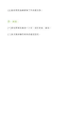 (三)協助家政推廣教育工作貢獻良多。 四、其他: (一)參加家事改進班十六年,現任班長、義指。 (二)多次獲頒優良家事改進班班長。