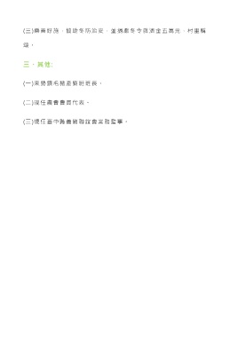 (三)樂善好施,協助冬防治安,並捐獻冬令救濟金五萬元,村里稱 頌 。 三、其他: (一)東勢鎮毛豬產銷班班長。 (二)現任農會會員代表。 (三)現任臺中縣養豬聯誼會常務監事。