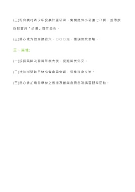 (二)配合農村青少年發展計畫研習,免費提供小葫蘆七 ○個,並傳授 四健會員「葫蘆」創作藝術。 (三)熱心地方教育捐款六、 ○○○元,獲頒獎狀表場。 三、其他: (一)接持美國及韓國草根大使,促進國民外交。 (二)接持澎湖縣四健協會會員參觀,促進技術交流。 (三)熱心參加農會舉辦之義指及創業會員各項講習觀摩活動。