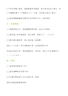 (一)無償提供土地,協助產業道路拓寬,受益九戶農家。