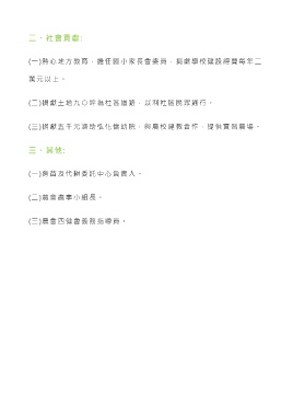二、社會貢獻: (一)熱心地方教育,擔任國小家長會委員,捐獻學校建設經費每年二 萬元以上。 (二)捐獻土地九○坪為社區道路,以利社區民眾通行。 (三)捐獻五千元濟助弘化懷幼院,與農校建教合作,提供實習農場。 三、其他: (一)育苗及代耕委託中心負責人。 (二)農會農事小組長。 (三)農會四健會義務指導員。