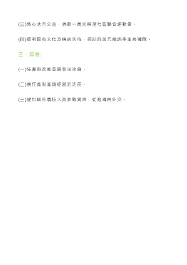 (三)熱心地方公益,捐獻一萬元辦理社區聯合運動會。 (四)重視固有文化及傳統民俗,捐助四萬元組訓學童舞獅隊。 三、其他: (一)任鳳梨改進委員會技術員。 (二)擔任鳳梨產銷經營班班長。 (三)提供國外農技人員參觀實習,促進國民外交。