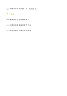 (三)參與政府各項推廣工作,任勞任怨。 三、其他: (一)埤頭鄉毛豬產銷班班長。 (二)中華民國養豬協 會會員代表。 (三)臺灣區種豬發展基金會委員。