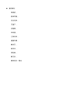 農家婦女 陳鳳釵 . 劉林月鶴 . 余彭菊妹 . 王富子 . 游碧蘭 . 林秀惠 . 江陳庚妹 . 盧董秋鑾 . 戴保玉 . 簡美珠 . 周張真 . 鄭玉燕 . 農家婦女一覽表