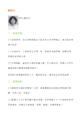 (一)吃苦耐勞,悉心照顧高齡且中風之祖父及侍奉翁公,使之能安享