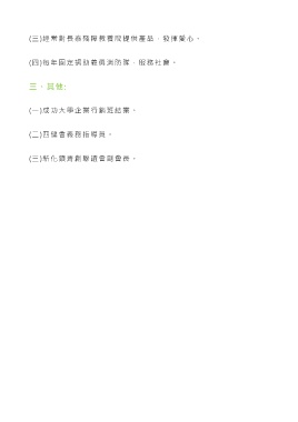 (三)經常對長泰殘障教養院提供產品,發揮愛心。 (四)每年固定捐助義勇消防隊,服務社會。 三、其他: (一)成功大學企業行銷班結業。 (二)四健會義務指導員。 (三)新化鎮青創聯誼會副會長。