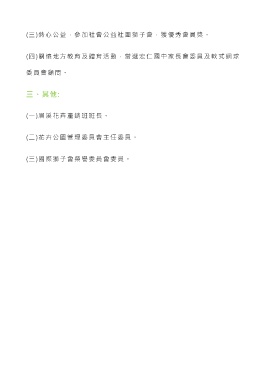 (三)熱心公益,參加社會公益社團獅子會,獲優秀會員獎。 (四)關懷地方教育及體育活動,當選宏仁國中家長會委員及軟式網球 委員會顧問。 三、其他: (一)眉溪花卉產銷班班長。 (二)花卉公園管理委員會主任委員。 (三)國際獅子會榮譽委員會委員。