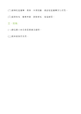 (二)提倡社區產業,教育,休閒活動,建設社區產業文化特色。 (三)服務熱忱,犧牲奉獻,默默耕耘,造福鄉里。 三、其他: (一)擔任國小家長會委員會及顧問。 (二)農業產銷班班長。