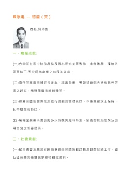 (一)自幼即在家中協助農務及潛心研究茶葉製作,未曾離農,種植茶