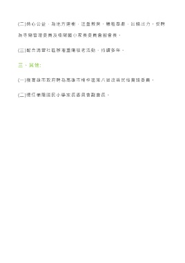 (二)熱心公益,為地方建樹,注重教育、犧牲奉獻,出錢出力。受聘 為寺廟管理委員及楠陽國小家長委員會副會長。 (三)配合清豐社區辦理重陽敬老活動、持續多年。 三、其他: (一)獲高雄市政府聘為高雄市楠梓區第八屆改善民俗實踐委員。 (二)現任楠陽國民小學家長委員會副會長。