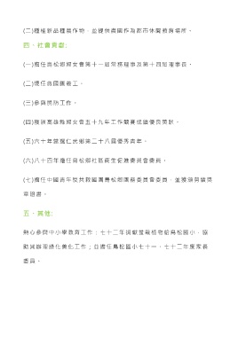 (六)八十四年擔任鳥松鄉社區衛生促進委員會委員。