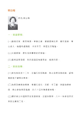 (二)為家政義務指導員,常擔任插花、烹飪、手工藝、茶藝指導老