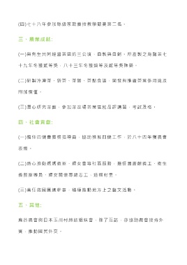 (四)七十八年參加縣級家政義指教學競賽第二名。