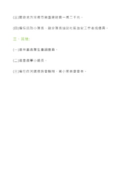 (三)贊助地方宗教寺廟重建經費一萬二千元。 (四)擔任民防小隊長、副分隊長協助社區治安工作表現優異。 三、其他: (一)農林廳農業生產調查員。 (二)農會農事小組長。 (三)曾任白河鎮教育會顧問、國小家長會會長。