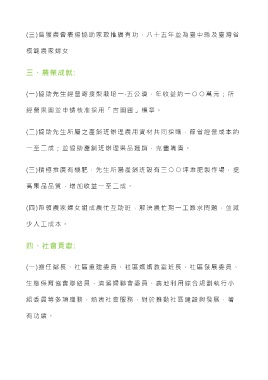 (三)曾獲農會表揚協助家政推廣有功,八十五年並為臺中縣及臺灣省