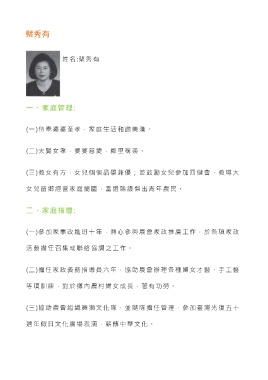 (一)參加家事改進班十年,熱心參與農會家政推廣工作,於各項家政