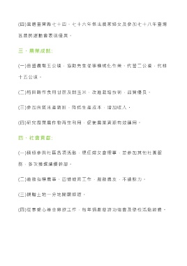 (二)義務指導農事、四健教育工作,服務農友,不遺餘力。