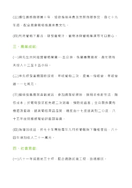 (三)擔任義務指導員十年,協助推展米食及烹飪指導事宜,自七十九