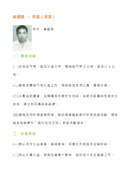 (一)熱心地方公益事務,服務鄉梓,深獲地方民眾肯定與好評。