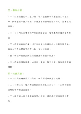 (二)十餘年來,每月樂捐育幼 院鮮羊乳三百公升,不定期贊助眾
