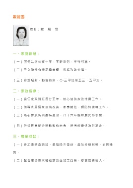 (一)服伺臥病公婆十年,不辭辛勞,孝行可嘉。