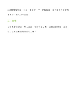 (三)栽種哈密瓜、小玉,面積約一甲,經驗豐富,並不斷研究新的栽 培技術,提高瓜果品質。 三、其他 參加農會家政班,熱心公益,參與各項活動,協助班務推展,義務 協助社區活動及推展愛心工作。