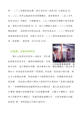 陳 女 士 的產品能很快得到「吉園圃」的認證。在產品行銷方面,陳