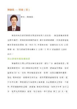 升冬茶品質。陳錦昌先生為培育出高產量 及品質優良之茶樹,不斷