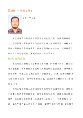 現任坪林鄉茶葉產銷班第三班班長的王成意,是具有領導能