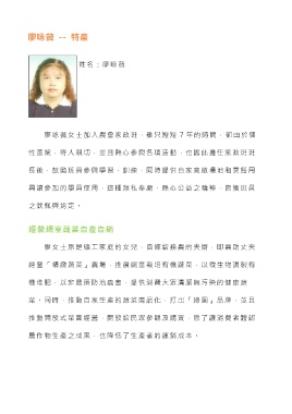廖咏薇女士加入農會家政班,雖只短短 7 年的時間,卻由於個