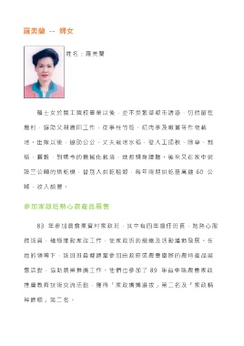 83 年參加農會東寶村家政班,其中有四年擔任班長,她熱心服