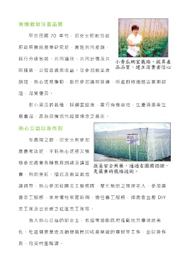 講習等,熱心參加社團志工服務隊,幫忙無助之獨居老人,參加農