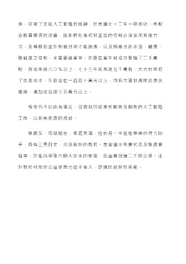 酸鹼度之控制、水質要適當等。於是在當年就成功繁殖了二千萬