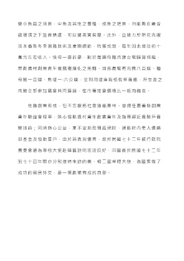 豬技術;同時熱心公益,常不定期慰問孤兒院,捐助村內老人俱樂