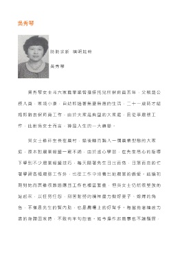 吳秀琴女士斗六家職畢業曾擔任托兒所保育員五年,父親是公