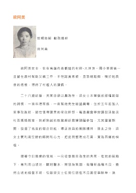 梁阿美女士,住在高雄市最偏遠的村莊 -大坪頂。國小畢業後一
